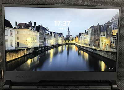 お預かりしたASUS ROG STRIX G15を起動すると、電源ランプやキーボードバックライトは点灯しているものの、液晶画面は真っ暗のまま。