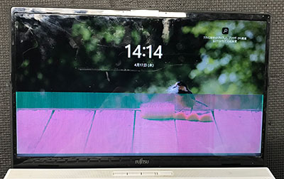 本来のWindowsロック画面が分割表示されているため、操作性も著しく低下していました。また、時間が経つにつれてピンク領域が拡大する可能性もあり、早急な修理が必要と判断しました。