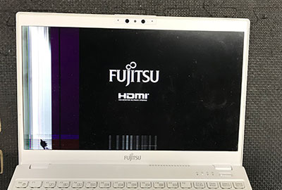 富士通FMVWE2U27 液晶左側に帯と線が出る故障を液晶交換で修復 愛知県