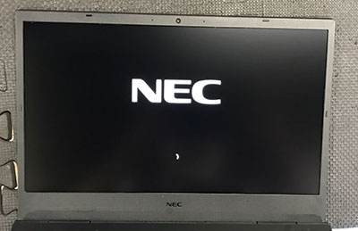 正常な黒背景に白文字のNECロゴが確認できます。