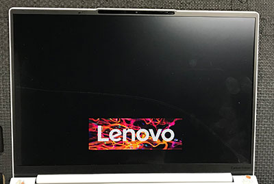 レノボのロゴも本来ですとちょうど中心に表示されるんですが、画面がぶれていることで下側に表示されておりますね。