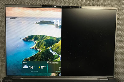 宮崎県より「富士通 FMVUXH1BC の画面の右半分が真っ黒になり、何も表示されない」とのお問い合わせをいただきました。