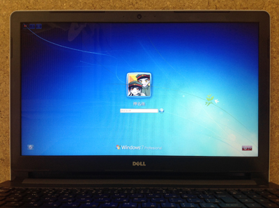 新しい液晶パネルに交換した結果、上の写真のようにWindows 7 のログイン画面がしっかり表示されるようになりました。