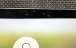 亀裂が入ってしまった部分はフロントカメラのすぐ横あたりになりますが、衝撃が加わった痕跡が確認できます。