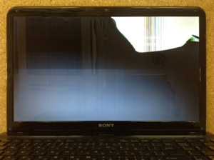 ノートパソコンの上に物を置いてしまい、画面に線が入り変色するようになってしまった。