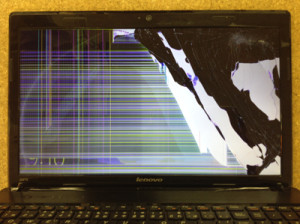 ▲画面右側に亀裂が確認でき、縦線や黒い帯が広がる状態