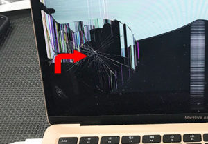 徳島県より「MacBook Air(Model A2337)の充電端子を挟んでしまい、液晶が割れて縦線が出てしまった」とお問い合わせをいただきました。