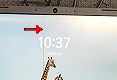 矢印の指す通り、画面の中央にわずかに黒ずんだ縦線が走っています。