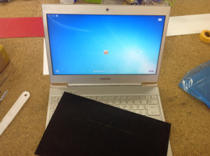 東芝のノートパソコンT55/45MRをお使いの方より画面故障でパソコン修理の依頼をしていただきました。
