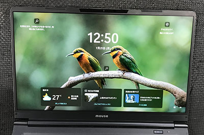 交換後は発色・輝度ともに回復し、Windowsのロック画面がくっきり表示されています。